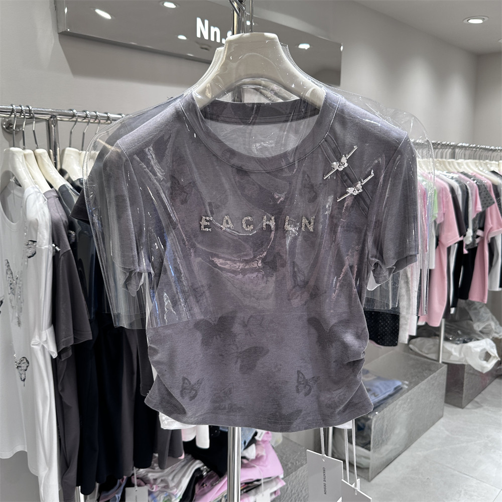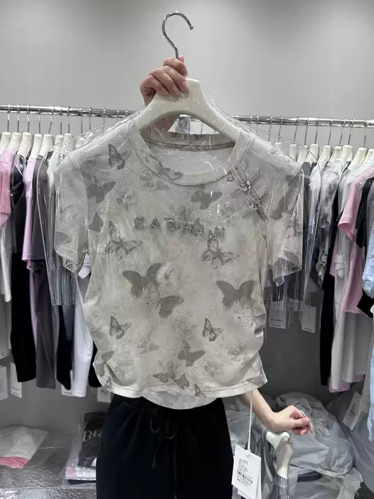 Adorned with dainty butterfly clasp accents at the neckline, this top blends playful charm with effortless elegance. The cropped silhouette flatters every figure, especially when paired with high-waisted bottoms for that perfect proportion.