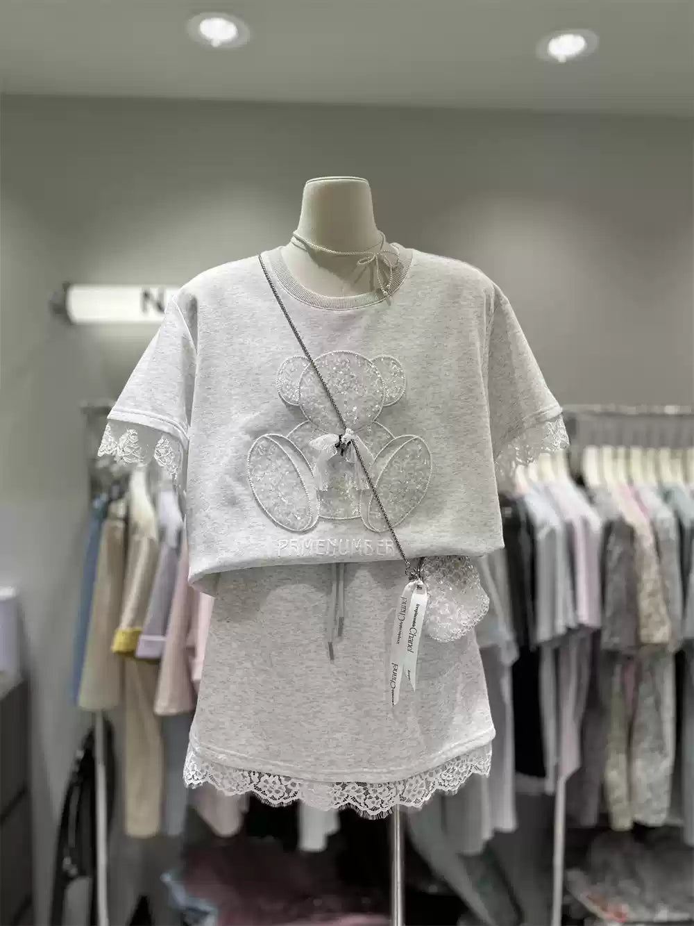 • Top: Oversized bear-embroidered tee (60s combed cotton)
